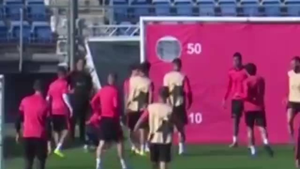 Antrenmanda genç takım arkadaşı Sergi Reguilon'a sinirlenen Ramos, topa iki kez sert şekilde vurarak Reguilon'u nişan aldı.
