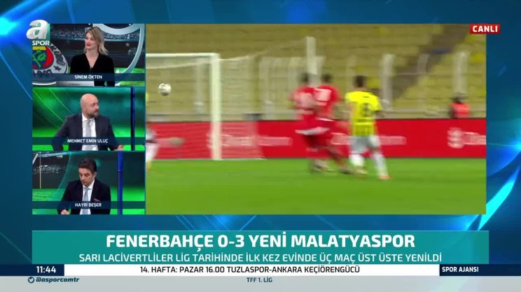A Spor yorumcusu Mehmet Emin Uluç, Fenerbahçe'nin sahasında Yeni Malatyaspor'a 3-0 mağlup olduğu karşılaşmanın ardından değerlendirmelerde bulundu. Uluç, "Erol Hoca planlarım var diyor ama sahaya hiçbir şey yansımıyor. Ortada bir plan göremiyorum. Fenerbahçe'nin ilk rakip yarı alanda paslaşması 9. dakikada oldu." dedi.