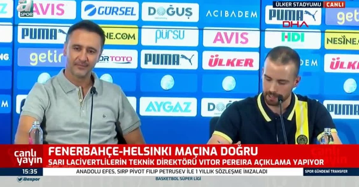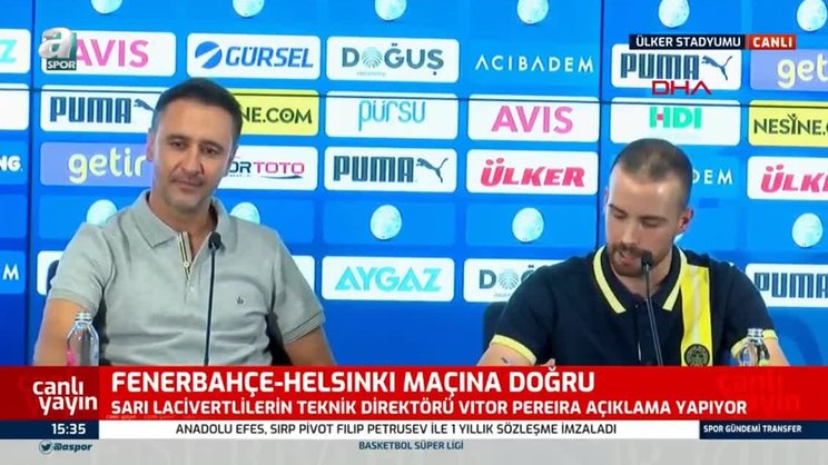 Son dakika spor haberleri: Fenerbahçe Teknik Direktörü Vitor Pereira, UEFA Avrupa Ligi play-off turunda HJK Helsinki ile oynayacakları maç öncesi basın toplantısı düzenledi. Kurduğu uzun cümleler sonrası tercümanıyla komik anlar yaşayan Portekizli teknik adam, açıklamalarını eksiksiz çevirmesi sonrası basın mensuplarıyla birlikte tercümanını alkışladı. İşte o anlar... (FB spor haberi)