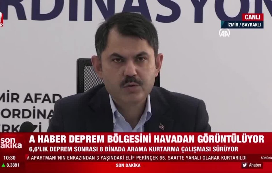 Son dakika İzmir depremi haberleri... Çevre ve Şehircilik Bakanı Murat Kurum, İzmir'de meydana gelen deprem sonrası şehirdeki AFAD Koordinasyon Merkezi'nde bölgedeki son durumla ilgili önemli açıklamalar yaptı.