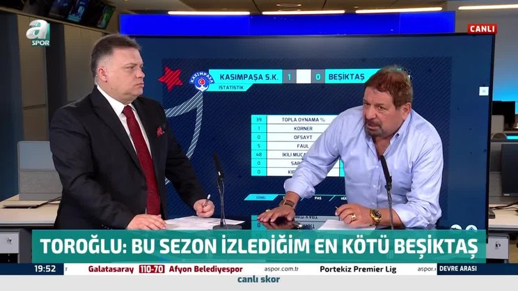 Son dakika spor haberi: Süper Lig'in 32. haftasında Beşiktaş, deplasmanda Kasımpaşa'ya konuk oldu. Karşılaşmanın ilk yarısını yorumlayan A Spor yorumcusu Erman Toroğlu, Devre Arası programında flaş açıklamalarda bulundu. Toroğlu, "Bu sezonun en kötü Beşiktaş'ı bu takım. Ayakta duramıyorlar. Çok fazla top kaybediyorlar." ifadelerini kullandı. | Son dakika Beşiktaş haberleri