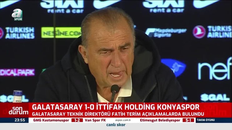 Süper Lig'in 38. haftasında Galatasaray, evinde Konyaspor'u 1-0 mağlup etti. Maçın ardından sarı kırmızılı kulübün teknik direktörü Fatih Terim, basın toplantısında açıklamalarda bulundu. Terim, "Her maç biraz daha sıkıntılı olacak bu bir gerçek" ifadelerini kullandı. İşte o sözler... | Son dakika spor haberi (GS haberleri)