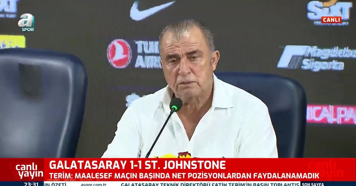 Galatasaray Teknik Direktörü Fatih Terim, UEFA Avrupa Ligi 3. ön eleme turunda İskoç ekibi St. Johnstone ile 1-1 berabere kaldıkları maçın ardından açıklamalarda bulundu. Terim, "Sezonun çok başındayız, taraftarımız bizim en büyük silahımız. Böyle olursa, bize doğru doğrultulmuş olur. Çocukları, taraftarın oyun anında tedavi etmesi gerekir. Yoksa oyuncu kalmaz. Aytaç'a tepki doğru ve hoş değil." dedi. (GS spor haberleri)