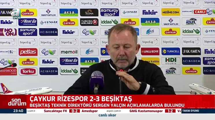 Spor Toto Süper Lig'in 38. haftasında Beşiktaş, deplasmanda Çaykur Rizespor'u 3-2 mağlup etti. Maçın ardından düzenlenen basın toplantısında konuşan Sergen Yalçın, sert açıklamalarda bulundu. Yalçın, "Hatayspor maçı 1 gün sonraya aldırmadı. Bunun arkasına ne var? Neyin peşindesiniz?" ifadelerini kullandı. | Son dakika spor haberi (BJK haberleri)