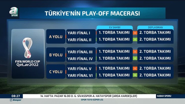 Spor haberi... 2022 Dünya Kupası Elemeleri'nde mücadele eden A Milli Takım'ımız grubunu 2. sırada tamamlayarak play-off etabına katılmaya hak kazandı. Millilerin bu etaptaki rakibi yapılacak olan kura çekiminin ardından belli olacak. A Spor yorumcusu Hüseyin Özkök kura çekimi ve Ay-yıldızlıların Katar bileti alma şansını canlı yayında değerlendirdi. İşte o sözler...