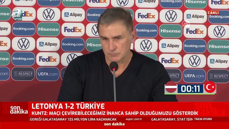 2022 Dünya Kupası Elemeleri'nde mücadele eden A Milli Takım'ımız, Letonya'yı 2-1 ile geçti. Müsabakanın ardından teknik direktör Stefan Kuntz açıklamalarda bulundu. Kuntz, "Oyuncularımın yediğimiz golden sonra verdiği reaksiyon için onları kutluyorum. Onlar hakkında çok yorum yapıldı. Bundan elbette etkilenirsiniz. Bu galibiyet onlar için önemli. Onlar adına seviniyorum. Çünkü daha fazlasını hakediyorlar" ifadelerini kullandı. | Son dakika spor haberleri