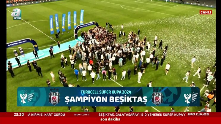 Turkcell Süper Kupa’da Galatasaray’ı 5-0 yenerek şampiyon olan Beşiktaş, kupasını aldı. İşte o görüntüler... | Son dakika Beşiktaş haberleri (BJK spor haberi)