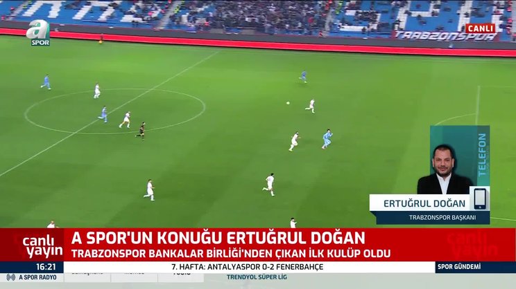 Tüm borcu ödeyerek Bankalar Birliği'nden ayrılan Trabzonspor'dan başkan Ertuğrul Doğan, A Spor'a önemli açıklamalarda bulundu. Başkan Doğan, "Camiamıza verdiğimiz sözü tutmanın gururunu yaşıyorum. Bankalar Birliği'nden çıkmak için 2.1 milyar TL ödeme yaptık. Trabzonspor ile alakalı yabancı yatırımcıların ilgisi mevcut ama bunla alakalı netleşmeden çok konuşmamak lazım. Ancak önemli bir yatırım grubunun ciddi bir ortaklık başvurusu oldu resmi olarak." dedi. | Trabzonspor haberleri
