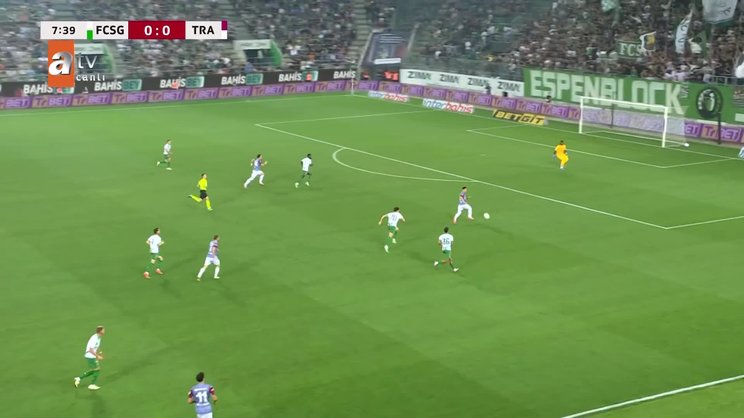Konferans Ligi play-off turu ilk maçında İsviçre'nin St. Gallen takımına konuk olan temsilcimiz Trabzonspor, maçın 8. dakikasında gole çok yaklaştı. Defansın arkasına sarkan Bardhi topu kalecinin üzerinden aşırtmak istedi, rakip kaleci topu tokatladı, direğe çarpan top oyuna döndü. İşte o pozisyon...