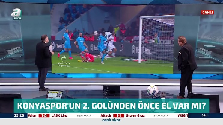 Spor Toto Süper Lig'in 13. haftasında Trabzonspor ile Konyaspor, Medical Park Stadyumu'nda kozlarını paylaştı. Mücadele 2-2 sona erdi. A Spor yorumcusu Erman Toroğlu, Konyaspor'un 2. golünü değerlendirdi. Fırtına cephesi pozisyonda el ile müdahale olduğunu belirtmişti. Toroğlu, "Şu pozisyonda değmiyor gibi. Aradan çıkıyor. Top değse başka yere döner. " ifadelerini kullandı. İşte o sözler...