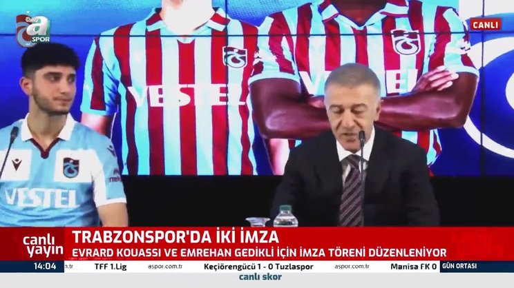 Lider Trabzonspor, sezon ortasında transfer ettiği isimlerden Emrehan Gedikli ve Jean Evrard Kouassi ile sözleşme imzalandı. Trabzonspor Başkanı Ahmet Ağaoğlu imza töreninde önemli açıklamalarda bulundu. Ağaoğlu, "Kouassi, Gervinho'nun sakatlanmasından sonra gerçekleştirdiğimiz bir transfer. Önemli bir transfer. Denizlispor maçında da hepimizin beğenisini kazanıp doğru bir transfer olduğunu kanıtladı. İnşallah hep birlikte büyük zaferlere imza atarız. Emrehan Gedikli'yi izleme ekibimiz 7-8 yıldır takip ediyordu. İleriye dönük planlarımızda önemli bir yeri olacak. Hayırlı olsun." dedi. | Trabzonspor haberleri (TS spor haberi)