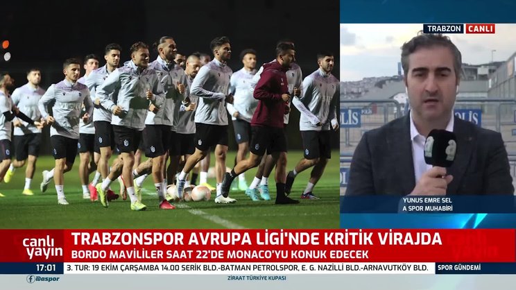 Trabzonspor - Monaco CANLI İZLE | Trabzonspor, UEFA Avrupa Ligi H Grubu 4. maçında Monaco'yu konuk ediyor. Zorlu karşılaşma Akyazı Stadyumu'nda oynanacak ve 13 Ekim Pazar günü saat 22:00'de başlayacak. Mücadele Exxen'den yayınlanacak. Trabzonspor - Monaco CANLI izle...