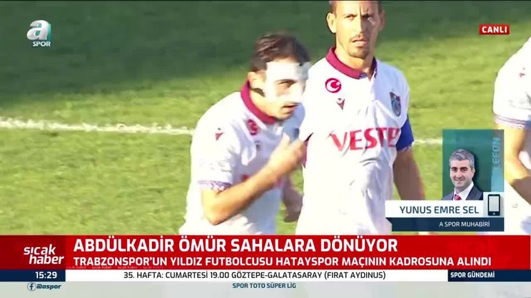 Son dakika Trabzonspor haberleri: Ligin ilk yarısında Konyaspor ile oynanan maçta sakatlanan Abdülkadir Ömür, sakatlığını atlattı. 21 yaşındaki oyuncunun Spor Toto Süper Lig'in 35. haftasında oynanacak Hatayspor maçında kadroda yer alması bekleniyor. Son gelişmeleri A Spor muhabiri Yunus Emre Sel aktardı. Sel, Abdülkadir'in Hatayspor maçında kadroda olacağını söyledi.