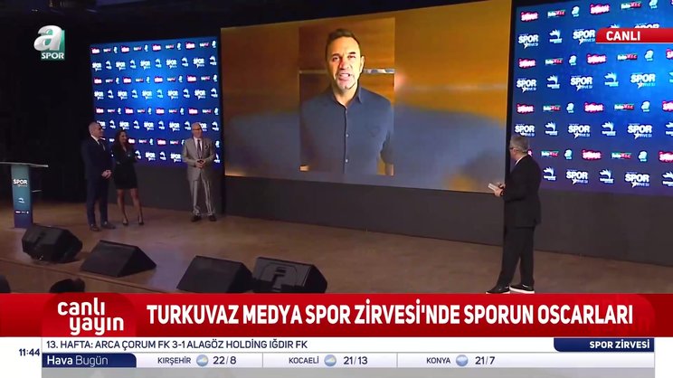 Turkuvaz Medya Spor Zirvesi'nde yılın teknik direktörü ödülü geçen sezon Galatasaray'ı Süper Lig'de şampiyon yapmayı başaran Okan Buruk'un oldu. Buruk aldığı ödülün ardından video mesaj ile teşekkür dileklerini iletti.
