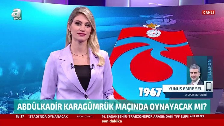 Süper Lig'in 16. haftasında Fatih karagümrük ile karşılaşacak Trabzonspor'da Abdülkadir Ömür'ün durumu merak konusu olmaya devam ediyor. A Spor muhabiri Yunus Emre Sel takımdaki son detayları aktardı. Sel, "Abdülkadir Ömür bu hafta teknik direktör Abdullah Avcı'nın şans vereceği oyuncuların başında geliyo" dedi
