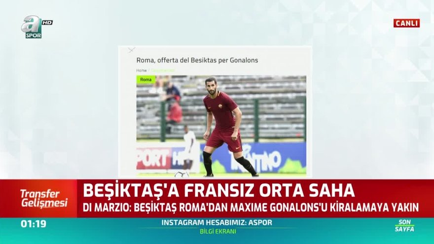 Orta sahasını güçlendirmek isteyen Beşiktaş, aradığı oyuncuyu İtalya'da buldu. İtalyan gazeteci Di Marzio'nun haberine göre, Beşiktaş Maxime Gonalons'u kiralamak için kulübü Roma'ya teklif götürdü.