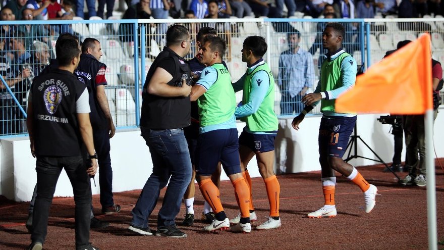 BB Erzurumspor'un Medipol Başakşehir'i konuk ettiği karşılaşmanın devre arasında ortalık karıştı. Erzurumspor taraftarlarının kendisine küfür ettiğini iddia eden ve taraftarlarla sözlü tartışmaya giren Emre Belözoğlu'nu görevliler güçlükle sakinleştirebildi.