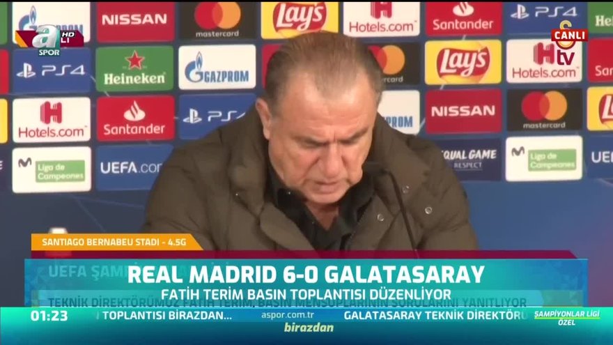 UEFA Şampiyonlar Ligi A Grubu 4'üncü maçında Real Madrid'e 6-0 mağlup olan Galatasaray'da teknik direktör Fatih Terim, karşılaşma sonrası düzenlenen basın toplantısında açıklamalarda bulundu.