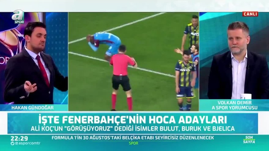 A Spor yorumcusu Volkan Demir, Son Sayfa programında Fenerbahçe'nin teknik direktör gündemine dair flaş açıklamalarda bulundu. Demir, "Fenerbahçe'de listenin başında Erol Bulut olduğunu düşünüyorum." ifadelerini kullandı.