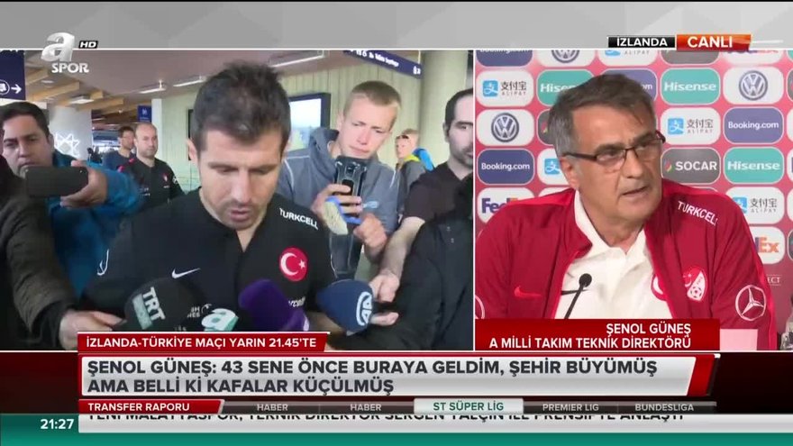 "İzlanda, Avrupa ve dünya şampiyonasında sempati topladı. Her milletin olduğu gibi onların da büyük bir hikayeleri vardır. Ben 43 sene önce, 1976'da buraya geldim. Saha aynı olabilir ama şehir çok değişti, büyüdü ama belli ki kafalar küçülmüş. Çok güzel bir ülkeydi, havası temiz, soğuktu ama insanları sıcak ve samimiydi. Aklımda hep İzlanda iyi izlenimler bırakmıştı ama şu an o izlenimler yok. Bir çok İzlandalı oyuncu Türkiye'de oynuyor, biz neyin peşindeyiz? İki memurun yaptığı terbiyesizliği mi konuşacağız. 53 yıldır futbolun içindeyim. Bu dediğimiz gümrük değil, X-Ray cihazından giriyorsunuz, bu ülkeye birey olarak da yapmıyor, X-Ray cihazına konulmaz insan. Memur, pasaportu aldı bana sallıyor. Kremleri, parfümleri telefonları alıyorsun, ne yapmaya çalışıyorsun. Burası nüfus olarak küçük bir ülke ama biz bunun insanlık değerlerinin büyük olduğunu düşünüyorduk, küçülttünüz mü bunu. Bunun sahaya etkisi yok ama ben sadece durum tespiti yapıyorum."