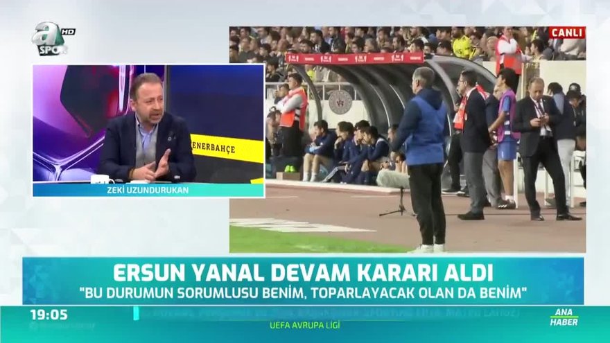 A Spor yorumcusu ve Fotomaç Gazetesi Genel Yayın Yönetmeni Zeki Uzundurukan, Ana Haber programında Fenerbahçe'nin gündemine dair flaş açıklamalarda bulundu. Uzundurukan, "Ersun Yanal çok formsuz kariyerini bitirmek üzere." ifadelerini kullandı.