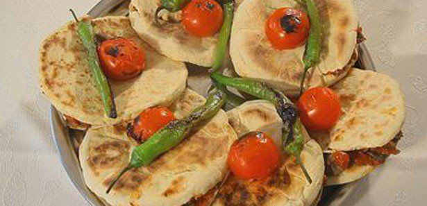 - Bazlamalar enine bıçakla koparmadan kesilir. İçine hazırlanan karışım konur.