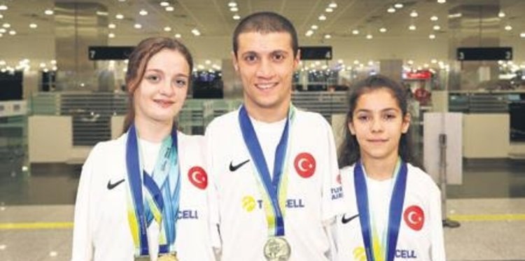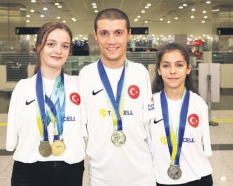 İrlanda'nın başktenti Dublin'de düzenlenen 2018 Avrupa Paralimpik Yüzme Şampiyonası'nda 4 madalya (1 altın, 1 gümüş ve 2 bronz) madalya kazanan milli yüzücüler yurda döndü. Altın ve bronz alan Sümeyye Boyacı (solda), bronz kazanan Beytullah Eroğlu (ortada) ve gümüş madalya sahibi Sevilay Öztürk havaalanında.